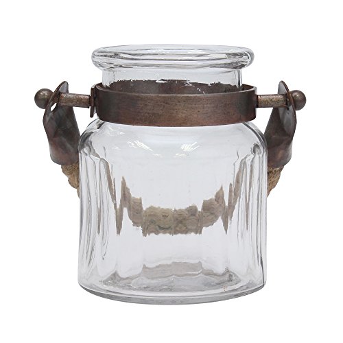 Stonebriar SB-5949A Farmhouse Small Glass Ribbed Jar with Copper Metal Trim