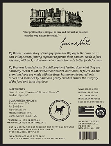 -. Feature : Made in NYC Local with same meat that is served in finest restaurants / 100% USDA Human Grade Liver Jerky! Perfect for dog obedience training / Healthy Dog Treat free of hormones, antibiotics and fillers! / Just three ingredients! Liver of Lamb, Flaxseeds, and Broccoli Florets! / Healthy dog treats and puppy treats reduce bad dog breath