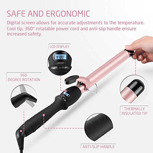 Curling Iron, Trèsutopia 1 Inch Curling Wand with 7.28 Inch Long Ceramic Barrel, Anti-scalding Insulated Tip, Digital Screen, 8.2 Ft Long Power Cable, 80 °F -...
