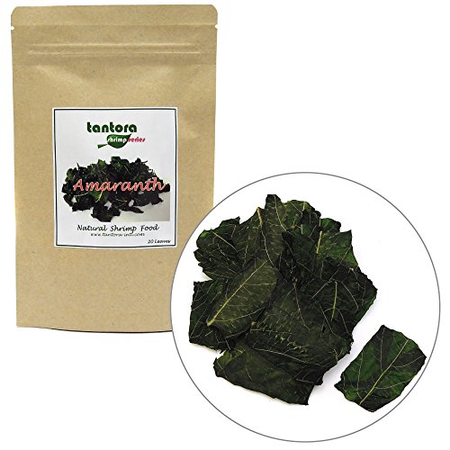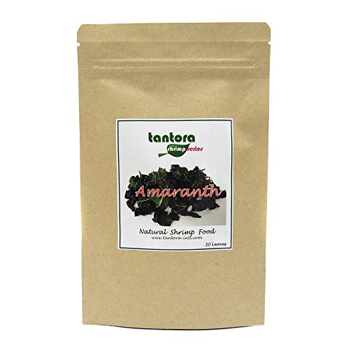 Tantora Amaranth Leaves are an all-natural and pesticide-free shrimp food. The leaves are highly nutritious and pair nicely with Tantora Mulberry and Guava leaves for a balanced shrimp diet. Freshwater dwarf shrimp love Tantora foods. Includes 20 hand-picked leaves in a resealable pouch.Feature