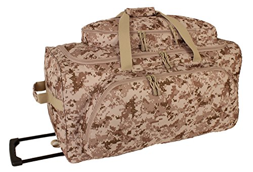 -. Binding : Apparel -. Brand : Military Luggage Company -. Color : Digital Desert -. Department : mens -. EAN : 0021676720641 -. Feature : 30 x 15 x 14 / 6300 Cubic Inches / Constructed Of 600 Denier Polyester / Locking Telescopic Handle / Roller Blade Wheel System -. Label : Military Luggage Company -. Manufacturer : Military Luggage Company -. ProductGroup : Apparel -. ProductTypeName : BAG -. Publisher : Military Luggage Company -. Size : Medium -. Studio : Military Luggage Company -. Title : Marpat Digital Desert Rolling Duffle Bag -. UPC : 021676720641