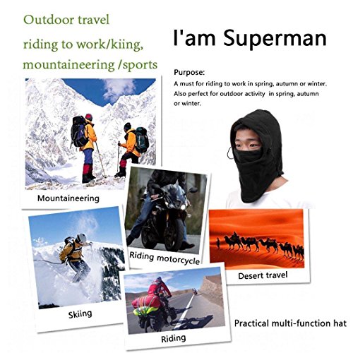 Binding : Apparel Product Description Unisex 6 In 1 Thermal Fleece Balaclava Hat Hood. Versatile, can be used as a hat, snood, scarf, mask to use. Perfect for active outdoor sports: cycling, motorcycle riding, fishing, hunting, climbing, camping, hiking, trekking, jogging, running, cosplay and so on. . Windproof, snow-proof, UV protection. Allergy free, no headache, eco-friendly and odorless - this balaclava is made of new developed polyester fiber that pulls moisture away from your skin. One size fits most. Designed for men and women.MACHINE WASHABLE - Warm durable fleece material will provide wind protection all winter long. 0