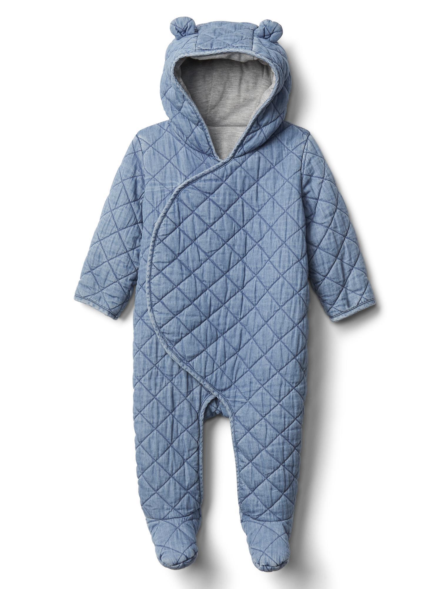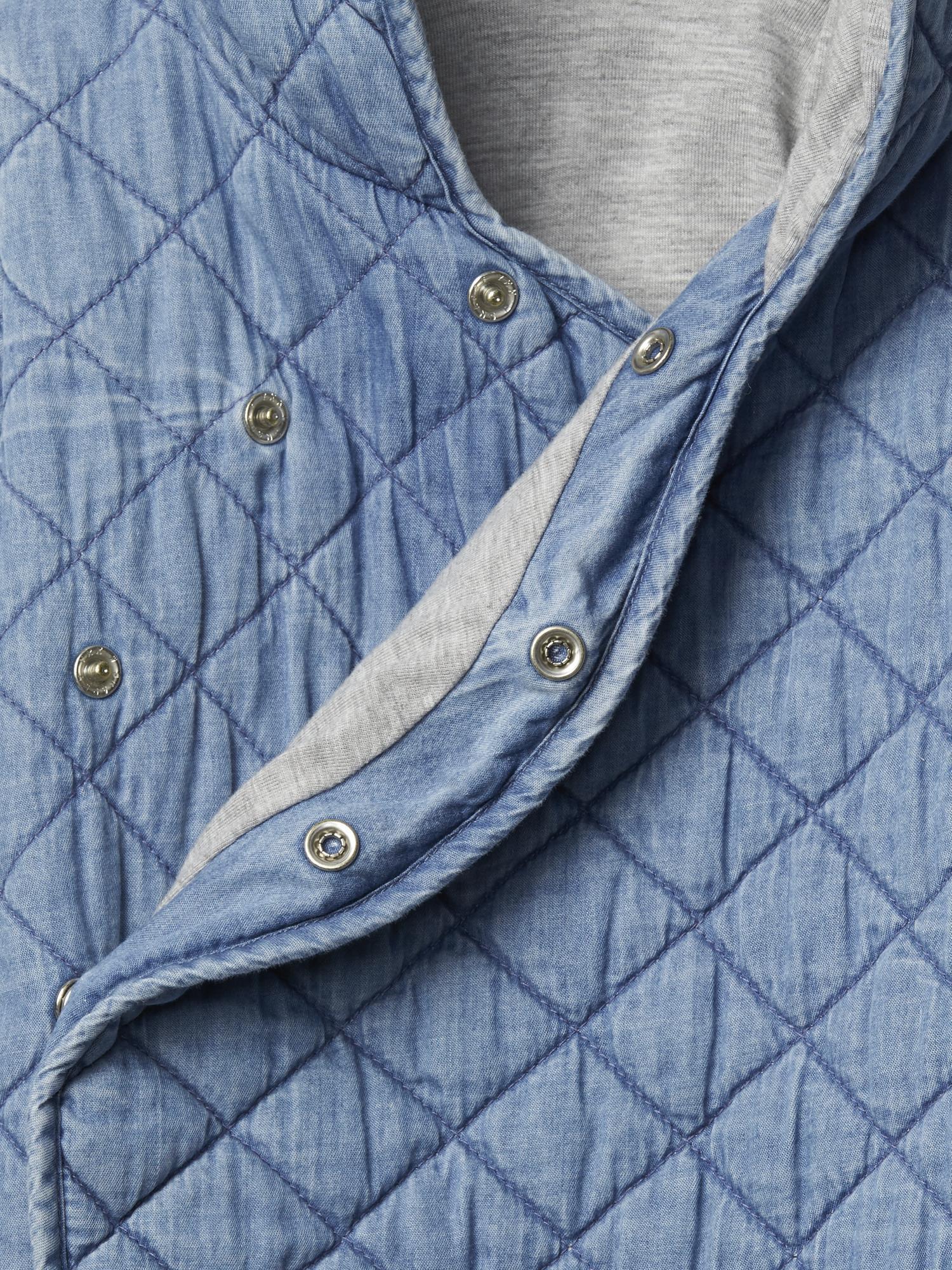 컬렉션 : 2018 Fall/Winter 디자인 포인트 : - 워싱된 샴브레이 소재에 퀼트 디자인이 포인트인 솜 패딩 우주복 / 저지 소재의 안감 스타일링 추천 : 티셔츠, 바지, 드레스 등과 함께 다양하게 연출 가능