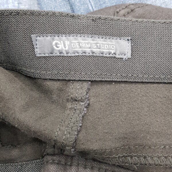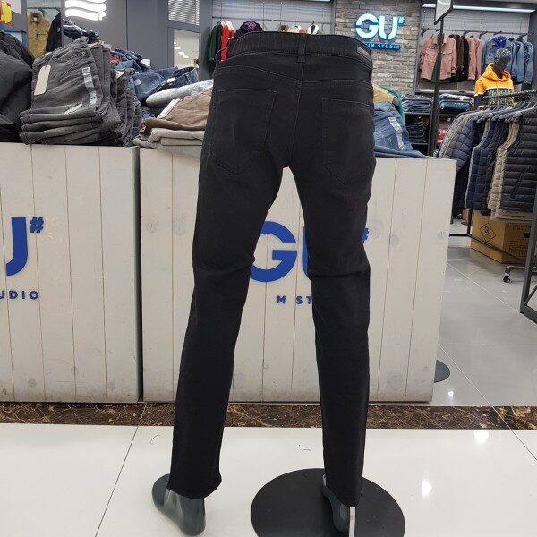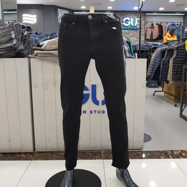 GU# 겟유즈드 (남성) 블랙 [기모] 뉴슬림 FUMFDPN105. 허리안쪽에 히든 밴딩처리하여활동성이 좋고 안정감을 더해줌. 마네킨32착장.