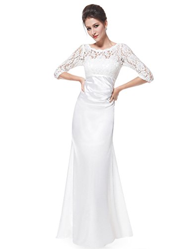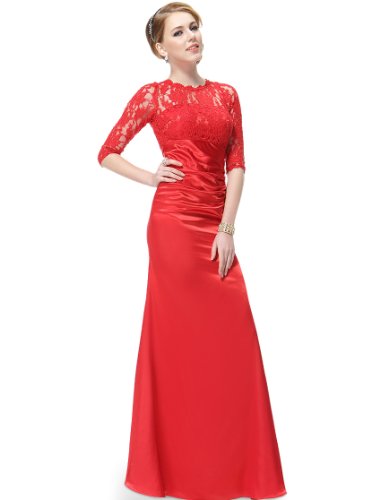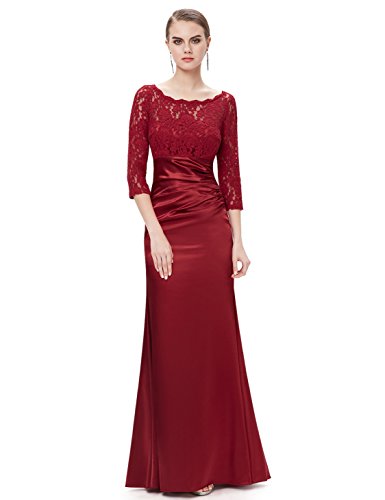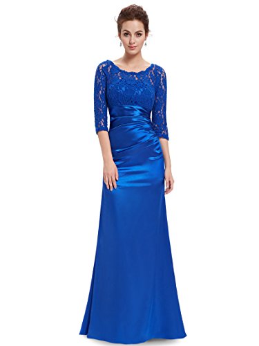 This stunning evening dress features a figure flattering ruched satin waist and a 3/4 sleeve lace bust. The formal floor length of the dress coupled with the classic black color makes this dress perfect for any black tie affair; it has also been very popular with mothers of the bride and groom.Feature