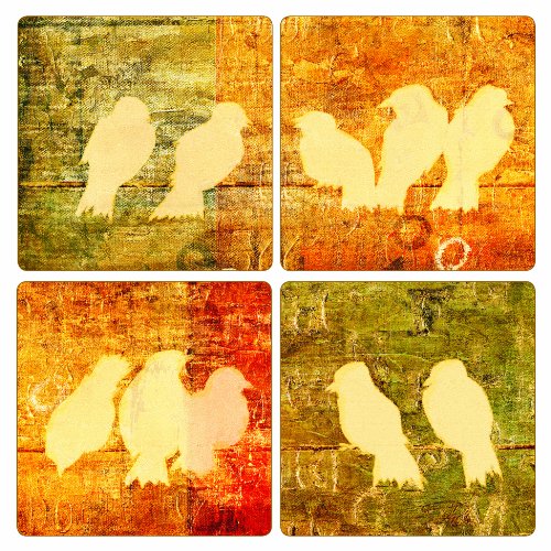Coasterstone AS10030 Absorbent Coasters, 4-1/4-Inch, "Birds Meeting", Set of 4
