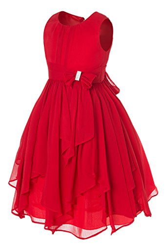 Simple yet elegant looking Yoru Chiffon dress with Asymmetric Ruffled Skirt and Jeweled bow waistline accent.