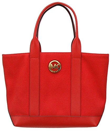 Micheal Kors Fulton Med Canvas Leather Tote Bag Nautical Red Sangria Gold Logo