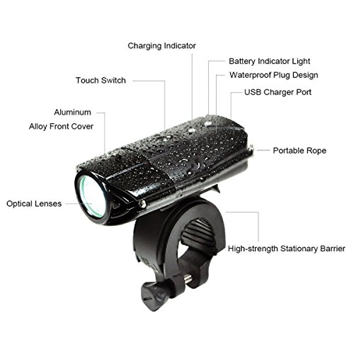 All in one design bicycle light - One Touch Dismount Button, press and slide the light out without removing the whole mounting bracket - Super bright 250-1200 lumen output bicycle front light led - No wires or external battery - Water resistant IP65 rating, weather tight design ensures all condition use - Can be used as a mountain bike headlight, road bike lights, kid's bike safety light and More!