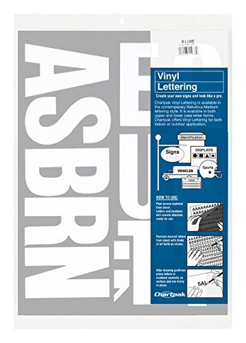 Chartpak Self-Adhesive Vinyl Capital Letters are perfect for creating displays, signs, posters and identifying property. Made of water-resistant material, these letters can be used outdoors, including use on vehicles and boats. All characters are in Helvetica font and have permanent adhesive. Punctuation characters Included. 6 inches high, Black, 38 per pack. Made in USA. Chartpak prides itself on integrating brands that affect the way we work, the way we learn, and the way we create.Feature