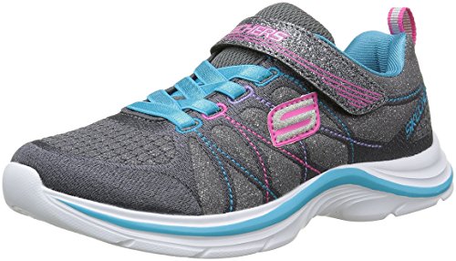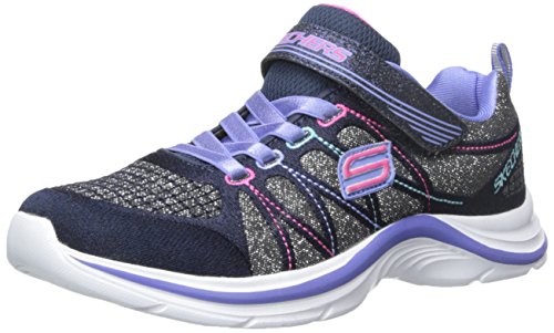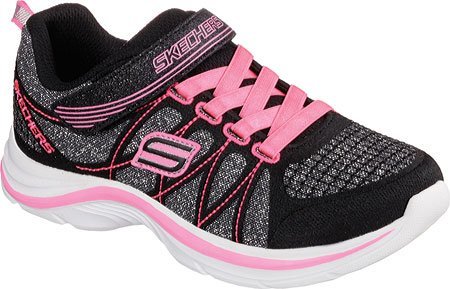 Stylish meets sporty in the SKECHERS Swift Kicks - Lil Glammer shoe. Skech Knit Mesh nearly one piece upper in a two strap front athletic sporty training sneaker with stitching and glitter detail.
