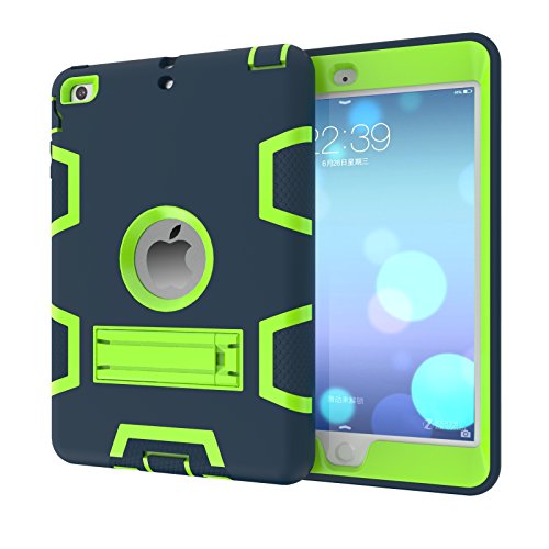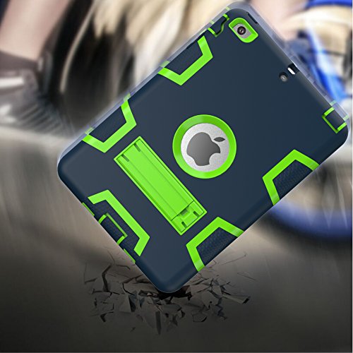 iPad Mini Case,iPad Mini 2 Case,iPad Mini 3 Case,iPad Mini Retina Case,Tading 3 in 1 Hybrid Shock-Absorption Kickstand Slim Armor Defender Protective Cover Skin - Navy Blue&Lime Green