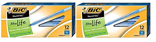 BIC Round Stic Xtra Life Ball Pen, Medium Point (1.0 mm), Blue, 24-Count