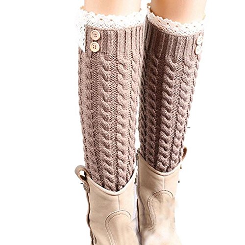-. Title : RICCOS (TM) Women's Fashion Winter Crochet Knitted Lace trim Warm Button Boot Cuffs Leg Warmer Long Boot Leggings (Khaki)