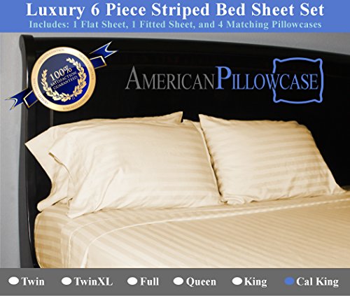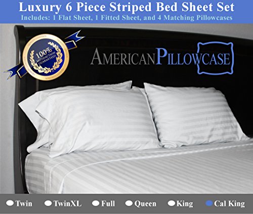 -. Brand : American Pillowcase -. Label : American Pillowcase -. Manufacturer : American Pillowcase -. ProductGroup : Home -. ProductTypeName : HOME_BED_AND_BATH -. Publisher : American Pillowcase -. Studio : American Pillowcase -. Title : American Pillowcase - Luxury Bed Striped Sheet Set - 100% Egyptian Cotton, 540 Thread Count With Wrinkle Guard (5 colors to choose from)