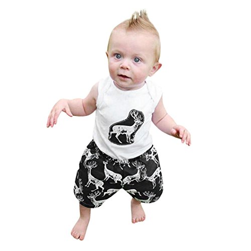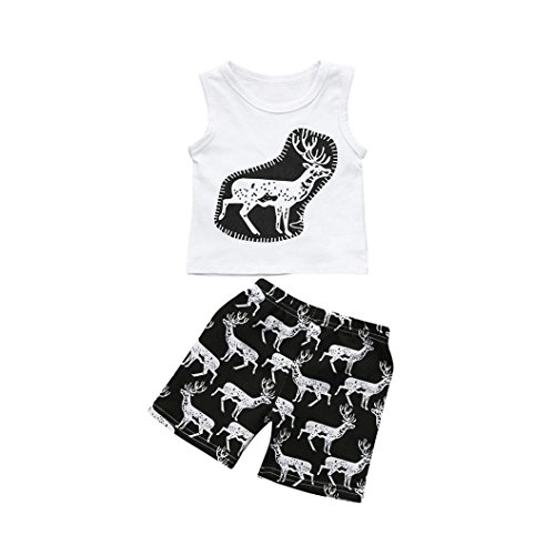 -. Title : SUKEQ Cute 2Pcs Newborn Toddler Infant Baby Boys Girls Deers P.R.Int Sleeveless Tanks Tops Shorts Clothes Outfits Set