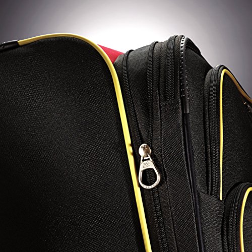 American tourister branded zipper pulls. Large packing compartment with large mesh pocket on interior panel and cross straps with fun printed lining.