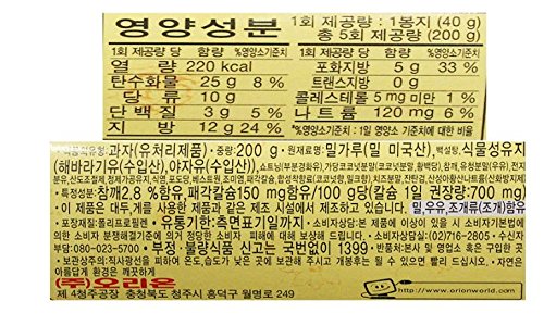 -. Binding : Misc. -. Brand : ORION -. EAN : 8809483191128 -. Feature : Experience Sweetness Followed by Saltiness and Finished Off With a Touch of Sesame / A Savory, Crispy, Salty-Sweet Cookie Cracker That Melts in Your Mouth / Goes Great with Wine and Cheese. Makes a Great Christmas or Holiday Snack -. ProductGroup : Grocery -. ProductTypeName : GROCERY -. Title : Korean Snack Orion Gosomi Sweet Cookie Cracker 200g (Pack of 3) Party Food Gift Promotion Children Nutritious Snacks