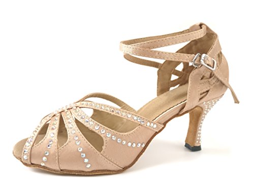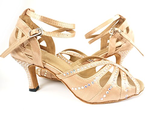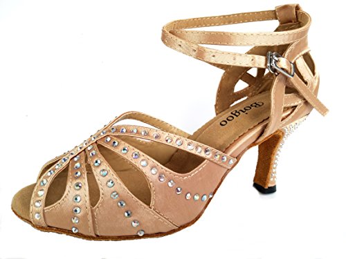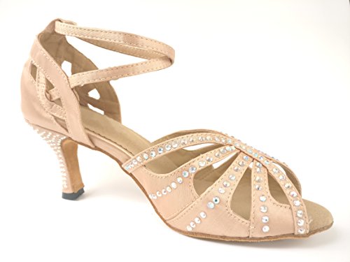 About Product 100% High Quanlity! Color:Nude Upper Material:Satin Outsole:OX suede leather We are free offer a pair of heel protector (protection of heel and non slip) and a pair of metatarsal Spandex Pads (protect your forefoot) In addition,we can offer customized services for Latin dance shoes.You can send your message to us(about color,size,design and more details if you have).