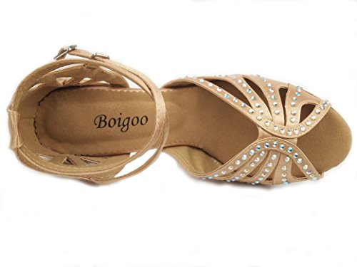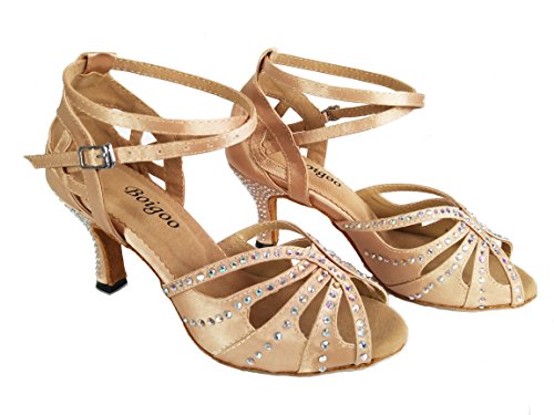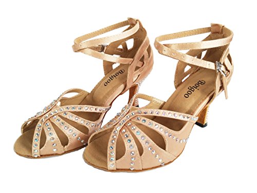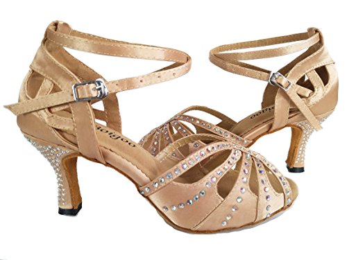 Tips 2.5-3.0 inches of shoes are suitable for dancing.Professional Latin dance shoes is belong to the soft bottom shoes. In the process of dancing, we need to pressure instep. When you pressuring instep, your foot would have to shrink. So pick small yard shoes will be more comfortable. (It's a little uncomfortable to start wearing the first few times, but after a few times the shoes will be big and just fit.)