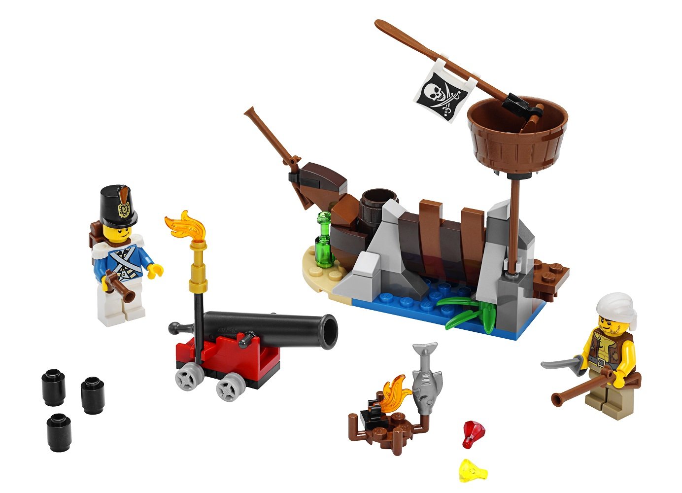 Combined with 70411 Takarajima, the world of Lego ® Pirates spreads further! With mini figures and accessories of Marine Corps and pirates.