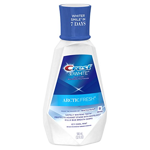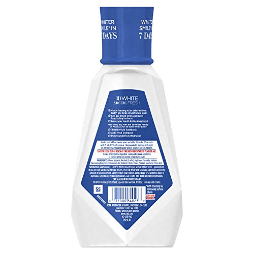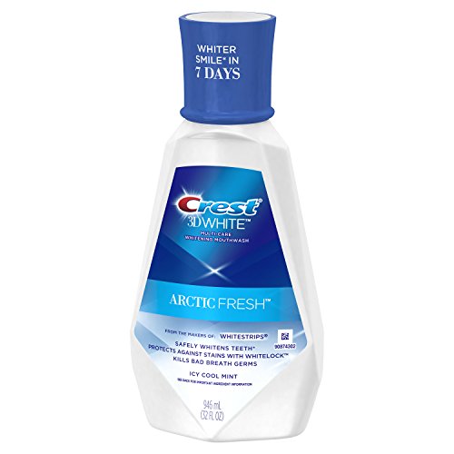 Rinse away stains for a more beautiful smile with Crest 3D White Luxe Arctic Fresh Multi-Care Whitening Mouthwash. Designed exclusively with Whitelock Technology, 3D White Luxe Arctic Fresh teeth whitening mouthwash acts as a whitening protector to help prevent new stains. Its exclusive triple-action technology whitens teeth, prevents surface stains, and freshens breath. Plus, when you use it together with your 3D White Pro-Flex toothbrush and 3D White Luxe Glamorous White toothpaste, you’ll see a whiter smile in just 2 days. Available with a refreshing Icy Cool Mint flavor, 3D White Luxe Arctic Fresh mouthwash is the missing step in your beauty routine.
