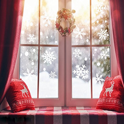 Christmas Snowflake Window Clings Decal - 176PCS Removable PVC Wall Window Sticker for Christmas, Holiday, Winter Wonderland White Decorations