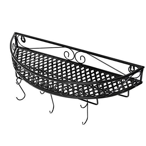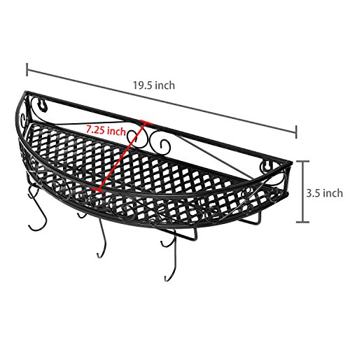 Studio : MyGift Publisher : MyGift Binding : Kitchen Product Description Keep pots and pans stylishly displayed and within easy reach with this wall-mounted pot rack. The sturdy metal that makes up this pot hanger features a decorative scrollwork design and a classic black finish that fit in beautifully with any decor, and you can easily install this kitchen storage rack on any wall using appropriate mounting hardware (not included). Use the 6 removable metal hooks that can be hung from the 2 sturdy metal bars on the bottom of this pot holder to hang up your pots, pans, and utensils with ease, and take advantage of the metal shelf at the top (which comes complete with a scrollwork railing) to keep store and display dishes, utensils, and knickknacks. Ready to bring both style and organization to your kitchen? Make this wall mounted storage rack yours today! **Official MyGift® product, includes multipurpose cleaning towel. Approximate Dimensions: 19.5" W X 7.25" D X 3.5" H. 0 |