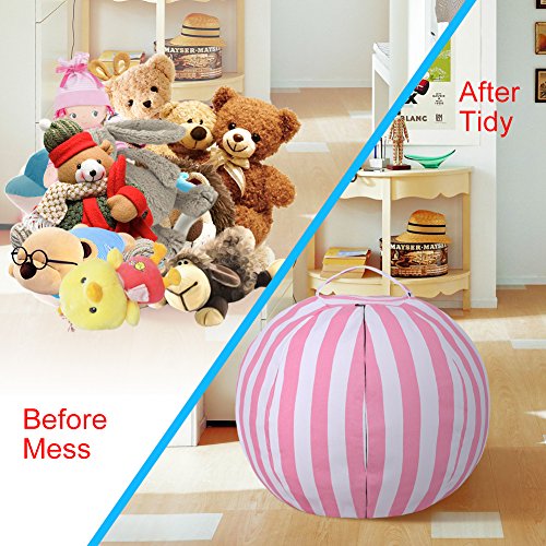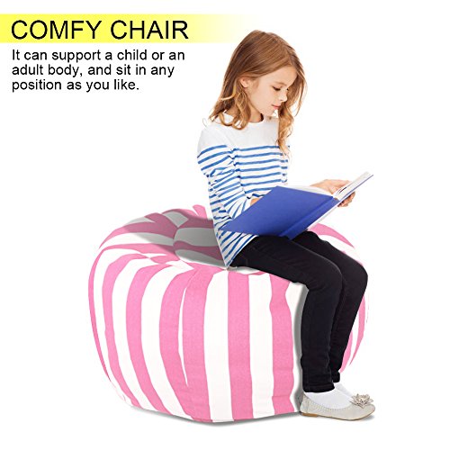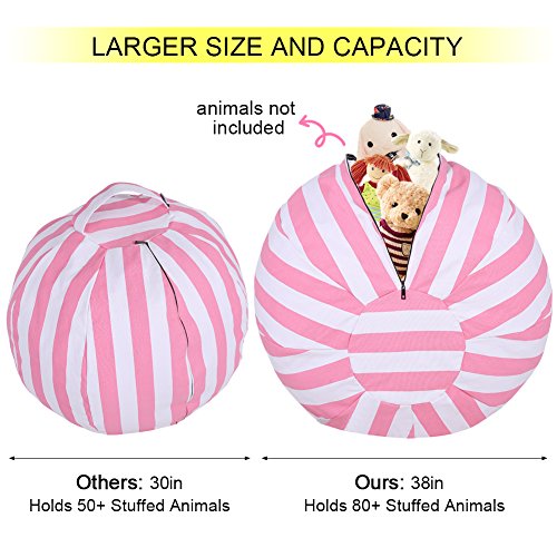 About this bean bag chair Premium durable 12 ann canvas material instead off 10 ann Extra long mental zipper Comfortable Wider handle Large size (80cm/32in) almost can hold 60 animal toys A comfy chair after stuffed Can stuffed soft things-animals, blankets, and pillows sheets, seasonal clothes, etc.? Package included: 1 x animal stuffed storage bean bag chair 1 YEAR WARRANTY. If yo are not satisfied with them, you can return it no-questions-asked for a 100% refund within 90 days. Click "ADD TO CART" now.