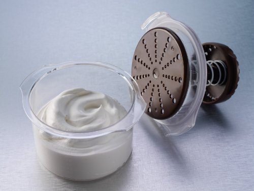 - Feature : Great for pint-sized portions, or desserts for two / Unique plunger circulates air and makes whipped cream fluffier and faster than ordinary beaters / Pump handle locks down for easy storage / Make freshly whipped cream or froth milk with just a few quick pumps / Simple pump eliminates sore arms