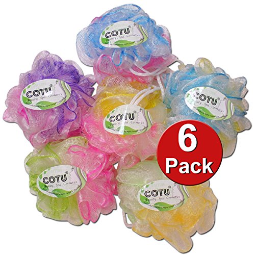 Comes in 6 assorted colors mesh pouf sponge (Exfoliating Texture - 4" in diameter - 30 gram)