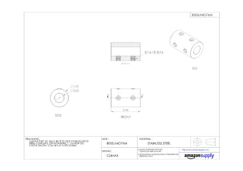 Climax Part RC-062-S-4H @ 90 T303 Stainless Steel Rigid Coupling, 5/8 inch bore, 1 1/4 inch OD, 2 inch length, 5/16-18 x 5/16 Set Screw