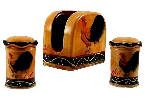 TABLE NAPKIN HOLDER, SALT & PEPPER SHAKERS ROOSTER