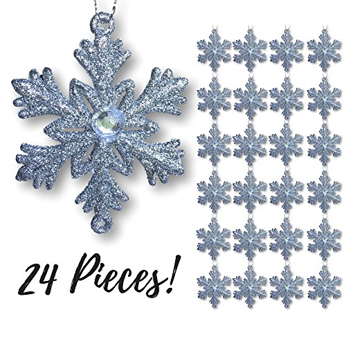 - Introducing "Christmas Joy" by Banberry Designs. Banberry Designs is known for quality Christmas ornament collections. This is a set of 24 silver glittered snowflakes. Each one is approx. 2 1/2" in diameter, and comes with hanging string ready to decorate your Christmas tree. Great size for small or large trees. Use to decorate wreaths, garlands, packages, and centerpieces.