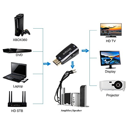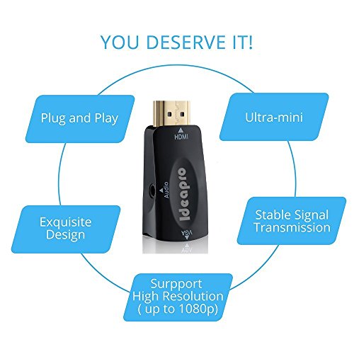 IDEAPRO Portable 1080P HDMI Male to VGA Female Video Converter Adapter Dongle with 3.5mm Audio Port for PC, Laptop, DVD, Desktop and other HDMI Input Devices