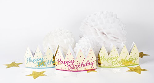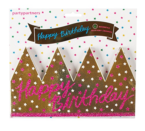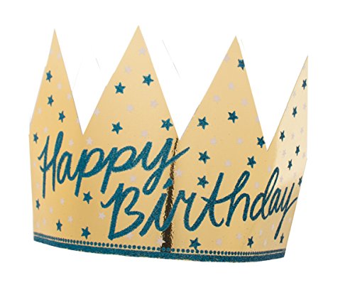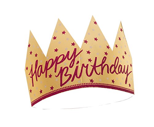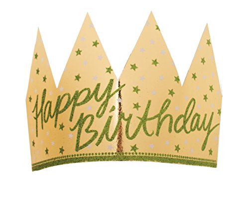 Party Partners 6 Count Happy Birthday Gold and Glitter Adjustable Paper Crowns, Gold