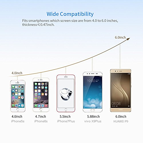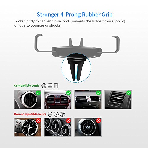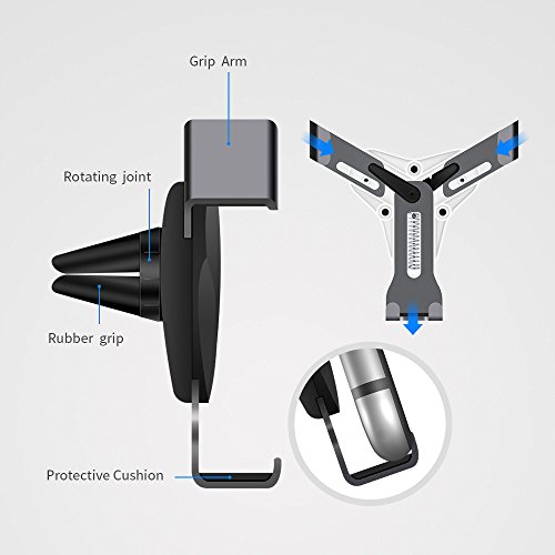 HaloCam Gravity-Powered Air Vent Car Phone Holder--Hands-free phone experience for road safety! Material: ABS Compatible for these sizes of smart phones:2.16inch(57mm)≤width≤3.27inch,thickness≤0.47inch Universal Adaptation Supports all smartphones which screen are from 4.0 to 6.2 inch, fits devices from 2.3 to 3.5 inch wide. Kindly noted: If the product could not hold your phone well please remove the protective case. This Phone holder for car supports horizontal and vertical vents, does not support Non-Intensive/Arc-Shaped/Retraction vents. One hand Operation Super easy to install, no tools needed. Just clamp it on the air vent, put in/take out your phone by one hand, offers great convenience, free your hands while driving. Non-magnetic No need to stick extra metal plate on the back of your phone, no need to worry about your phone falling off the holder when the magnet becomes weakening. Good companion on the road This car holder for cell phones is not bulky or space consuming at all. You no longer have to suffice for keeping your phone in the cup holder or dashboard, because a normal car mount gets in the way. Just clamp it into the Air Vent, thereby not blocking your windshield. Spring Clamp and Soft Rubber Mat Unlike other holders with 4 prongs which are easy broken and slipped off the air vents(even scratch the outlet), this car phone holder is equipped with spring clamp and soft rubber mat. Press the switch to clamp it on the air vent, its high elastic spring and rubber mat guarantee it keep stable even driving on the bumpy road. PRODUCT WARRANTY HonShoop provides 45days money-back, worry-free 12-month Warranty and friendly customer service. Package Included: 1 * HaloCam Car Phone MountFeature