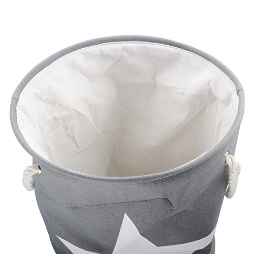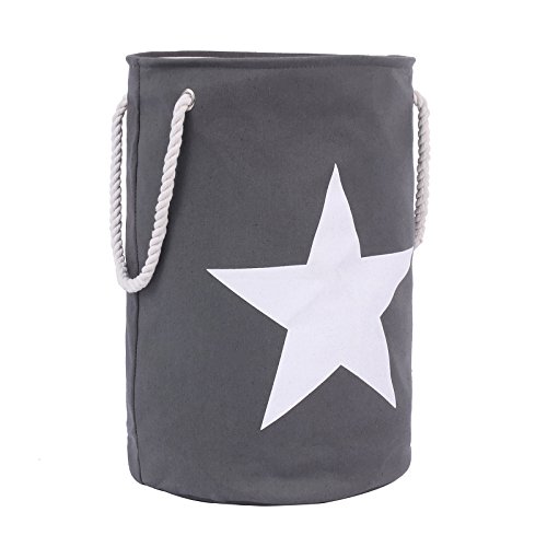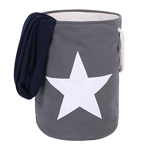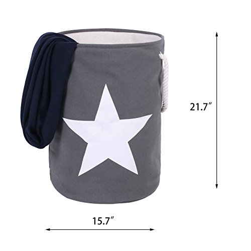Caroeas Extra Large 21.7" Star Laundry Basket Double Layer Canvas Storage Hamper Round Laundry Bin Zakka Organize Closet (1, Grey)