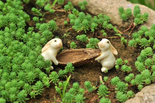 Top Collection Enchanted Story Garden Rabbits Carrying Nutshell Outdoor Decor