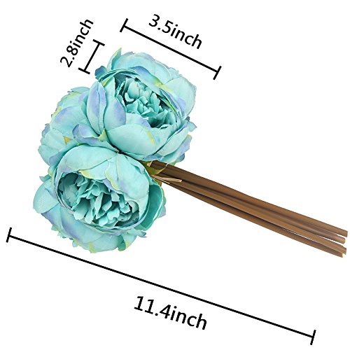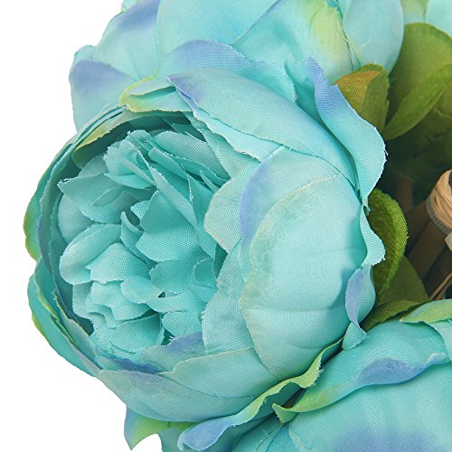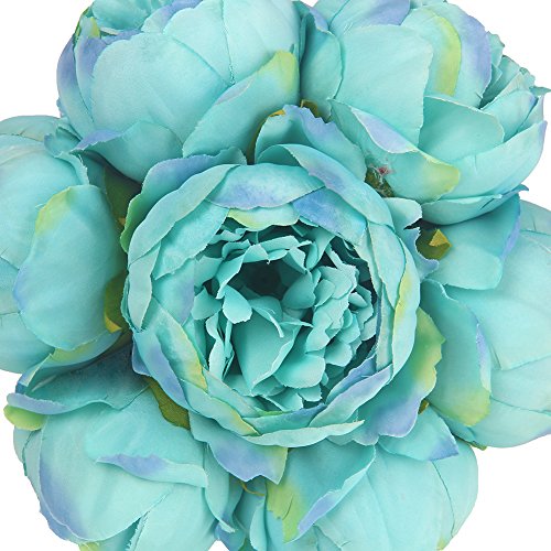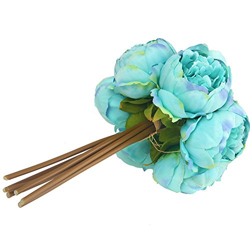 WisomJK Artificial Flowers 1Bouquet / 7Heads Artificial Peony Bride Holding Flowers Colorful Spring Flower Soft Silk Bouquet for Home / Hotel / Office / Wedding / Party / Garden Decor (Lake Blue)