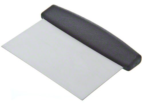 - This dough scraper features a plastic handle for a comfortable grip