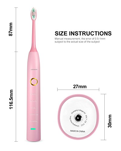 Studio : Landwind Publisher : Landwind Binding : Health and Beauty Product Description 5 working modes: Clean, refresh, white, gum care, sensitive 100 days standby time vibrational frequencies: 31000 times per minute water-proof rate: Ipx7 sound intensity: <42db operating temperature: 0~40 Celsius battery: Lithium battery, 3.7v, 2000mah package size: 8.2 inch x 3.1 inch x2.1 inch working mode: 2 minutes in total, pause per 30s package includes: Sonic toothbrush handles x 1, toothbrush head x 2, user manual x 1, usb charger cable x 1. 0