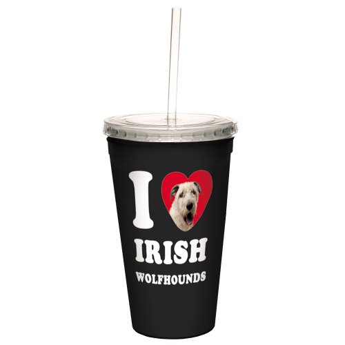 Tree-Free Greetings CC35070 I Heart Irish Wolfhounds Artful Traveler Double-Walled Cool Cup with Reusable Straw, 16-Ounce, White