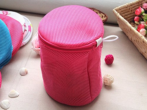 FashionBoutique High Quality Set of 2 Convenient Home and Personal wash bags set - ONE Medium Quadrate Washing Bag + ONE Bra Wash Bag (White and (cylinder-shaped) Hotpink)
