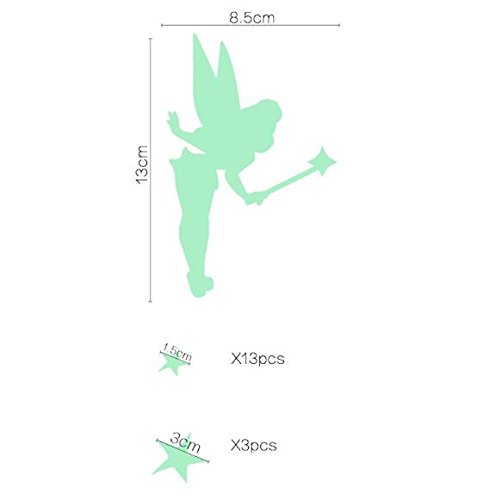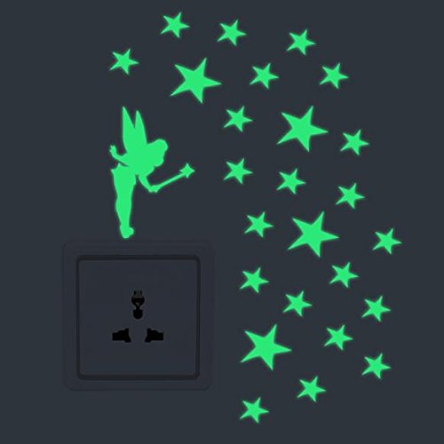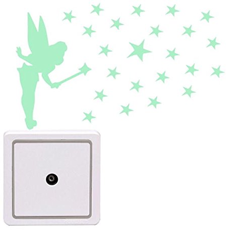 Fairy Wand & Star, Glow In The Dark Wall Luminous Sticker At Night, Beautiful Glowing Power Switch Reminder Decals or Wall Decor For Kids' Bedroom (Green)