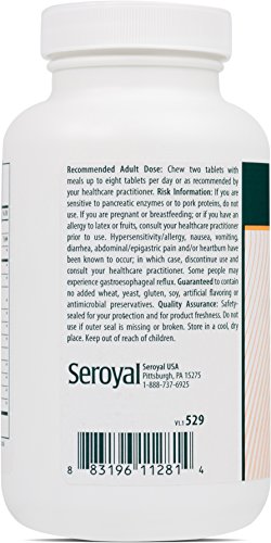 -. Binding : Health and Beauty -. Brand : Genestra Brands -. EAN : 0767644107693 -. Feature : Digestive enzymes to support proper absorption of nutrients / 100 Tablets / This product is gluten free -. IsAdultProduct : 0 -. Label : Seroyal -. LegalDisclaimer : * These statements have not been evaluated by the Food & Drug Administration. These products are not intended to diagnose, treat, cure or prevent any disease. Please contact your healthcare professional immediately if you experience any unwanted side effects. The information contained herein is for informational purposes only and does not establish a doctor-patient relationship. Please be sure to consult your physician before taking this or any other product. -. Manufacturer : Seroyal -. MPN : 10529 -. PackageQuantity : 1 -. PartNumber : 10529 -. ProductGroup : Health and Beauty -. ProductTypeName : HEALTH_PERSONAL_CARE -. Publisher : Seroyal -. Studio : Seroyal -. Title : Genestra Brands - Bio Enzymes - Complete Digestive Enzymes Formula in Chewable Tablets - Natural Peppermint Flavor - 100 Chewable Tablets -. UPC : 767644107693