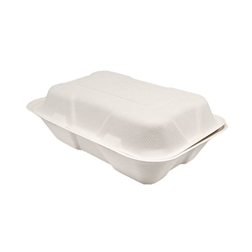 Lollicup KE-BHC96-1C Karat Earth Bagasse Hinged Clamshell Container, 9" x 6" (Pack of 200)