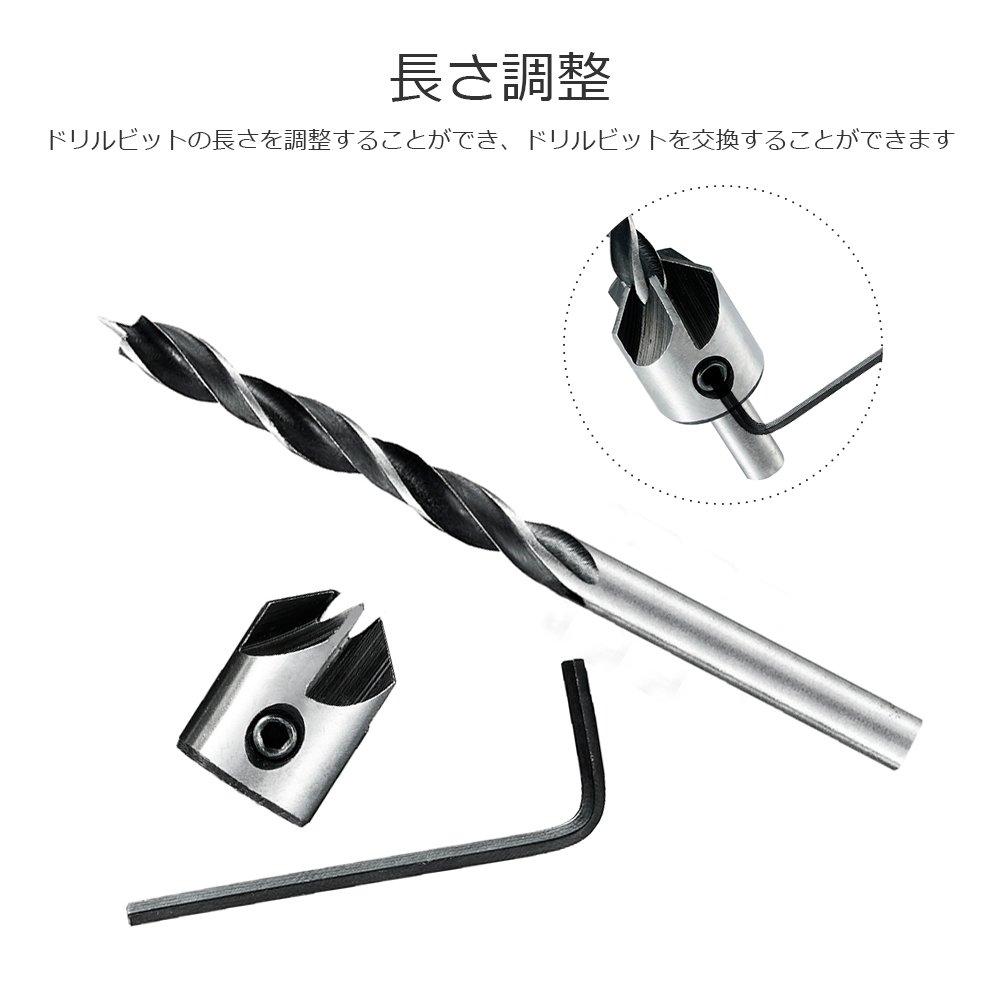 緩 Loosen the setscrew with the included hexagonal wrench and adjust the drill length after adjusting to the desired length, again it is convenient because it can adjust the drill length just by tightening.