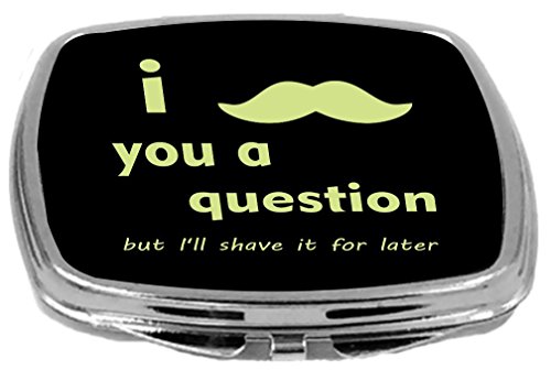 Rikki Knight Compact Mirror, I Mustache You a Question Lime Green On Black