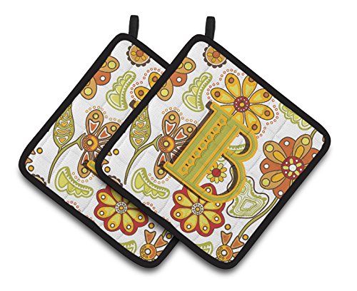 Caroline's Treasures Letter B Floral Mustard & green Pair of Pot Holders CJ2003-BPTHD, 7.5HX7.5W, Multicolor